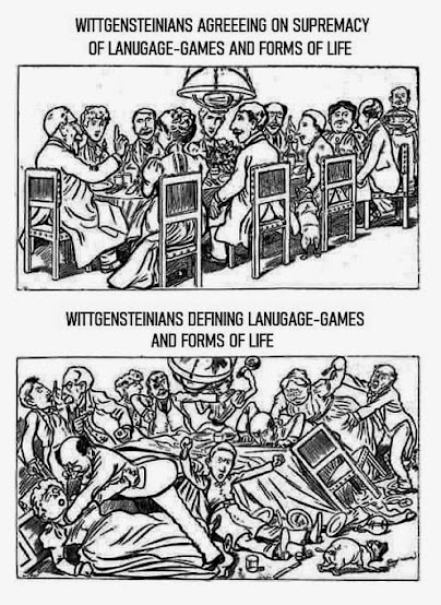 "Language is a game, words usually do not have a single meaning. The concrete meaning is expressed in the use of the word. Meaning not only requires a shared definition but also a shared "form of life". Et cetera, et cetera."
